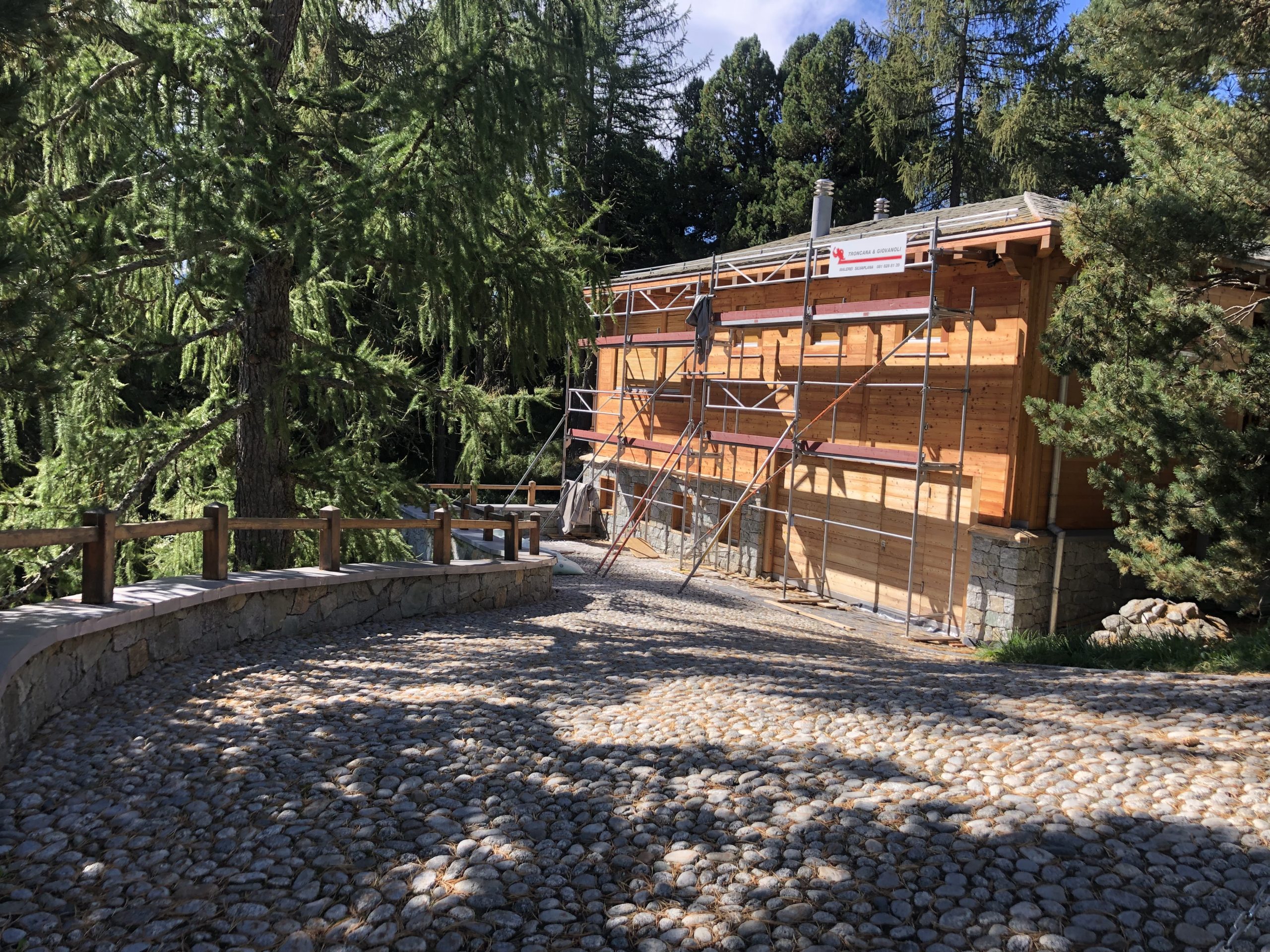 - Führt ein geschwungener, gepflasterten Weg zum Haus?