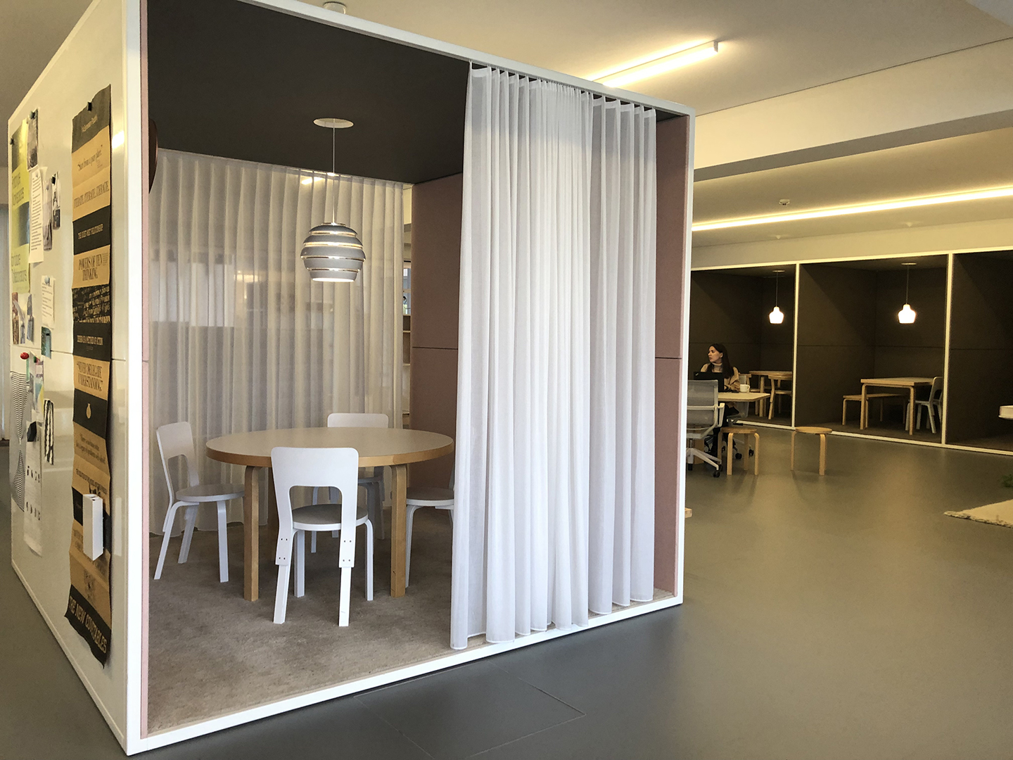 Glücklicherweise leben wir heute in einer Zeit, in der Individualiät groß geschrieben wird. So werden die unterschiedlichen Sitz- oder Stehmöglichkeiten den Bedürfnissen Einzelner gerecht und setzen ihre vielfältigen Potenziale frei. Gleichzeitig können Menschen verschiedener Abteilungen und Fachbereiche ungezwungen zusamenfinden im Café, am Kamin oder auch im Freien …