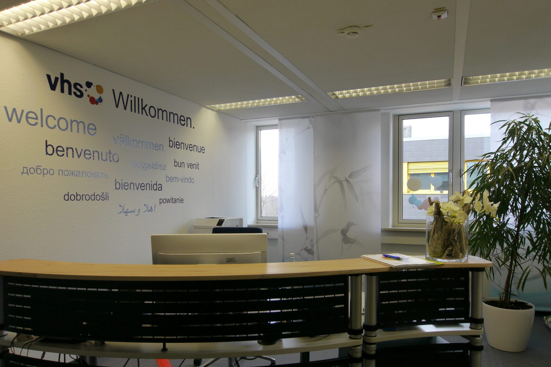 Die Mitarbeiter der VHS setzten sich sehr für die gute Umsetzung des Gestaltungskonzepts ein, insbesondere für die Realisierung der Möbel, Farben und der Schriften.